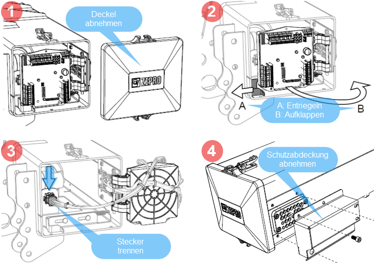 Démontage de l'inclinomètre - étapes de travail 1 - 6 |